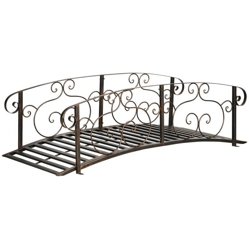 This Outdoor Vintage Bronze Arch 6-ft Garden Bridge with Side-Rails features safe rails and adds charming antique decoration to your backyard stream, creak, fish pond, or walkway. A centerpiece for your landscape, watch as the antique vine motifs and scrollwork shapes draw in eyes, and put the cherry on top of your zen garden. Landscaping your garden doesn't have to be garish, have form, and function with this fantastic footbridge.