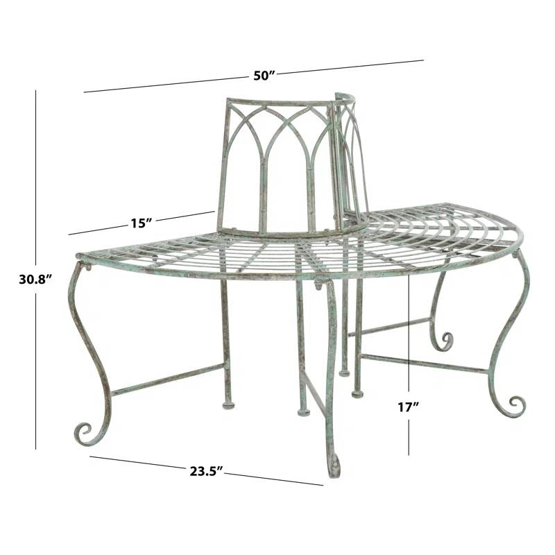 This Half-Circle Outdoor Patio Garden Wrought Iron Tree Bench in Antique Green adds a whimsical touch to any estate. Designed with an antique white finish on its wrought iron scrollwork, Abia creates an instant shaded oasis by any greenery. It is ideal for adding extra seating in the garden and timeless charm to any outdoor living area.