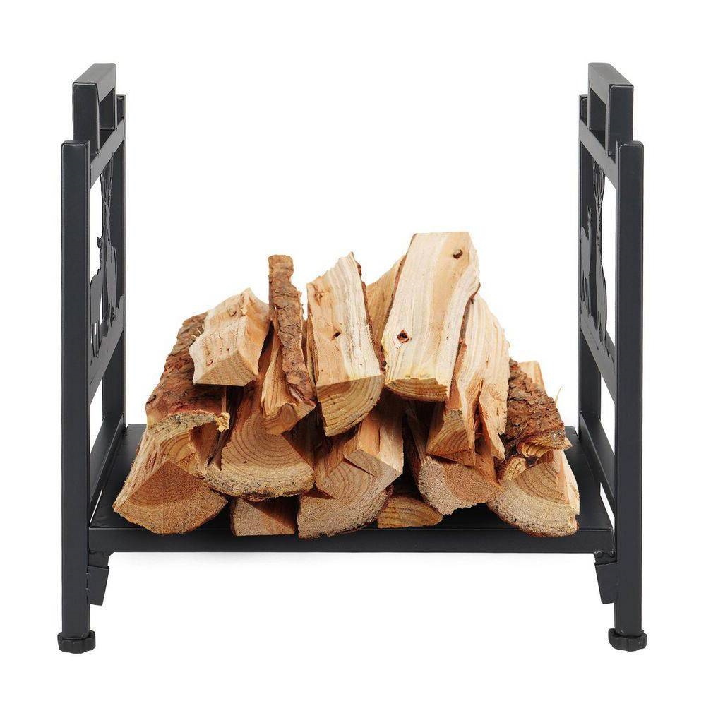 1.5 Ft. Black Metal Firewood Log Rack with Deer Pattern