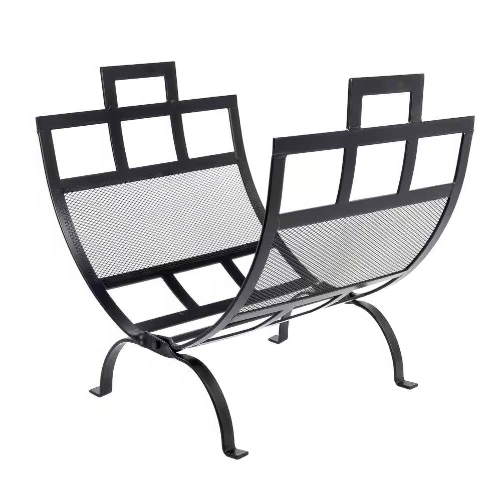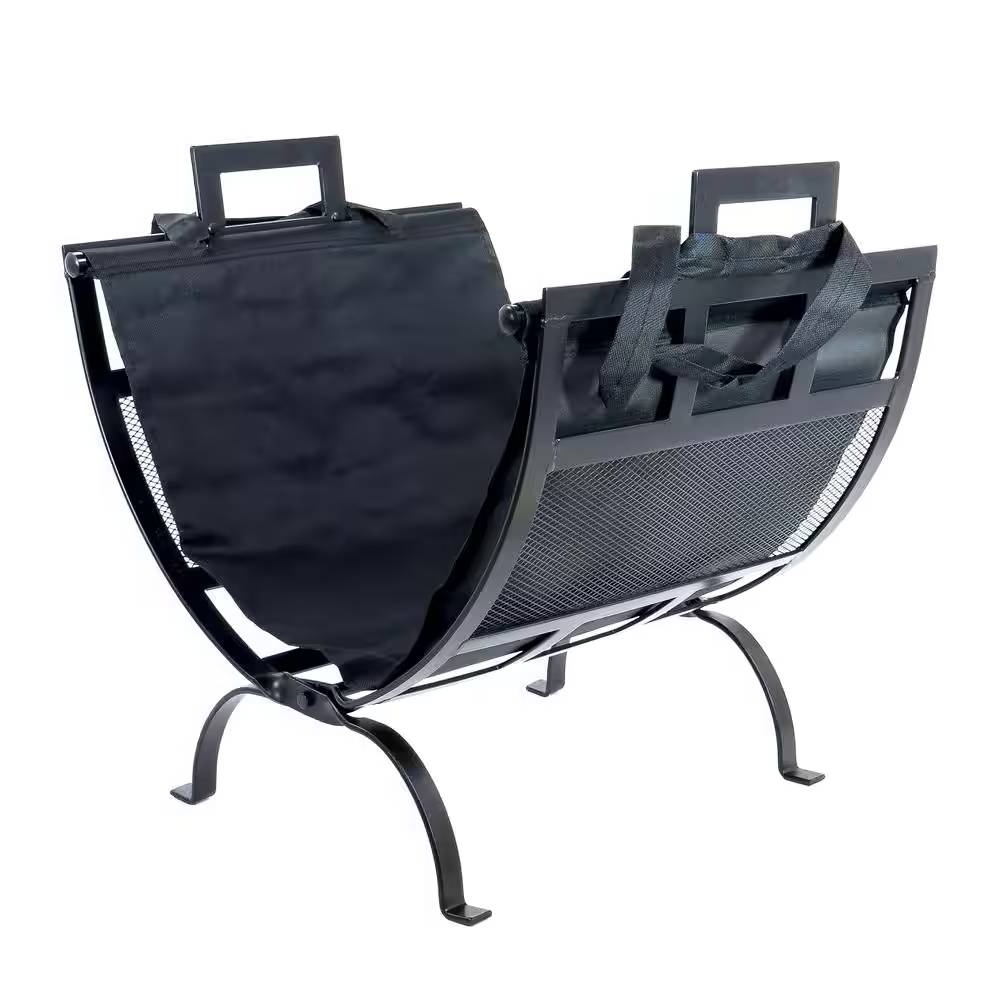 Heavy Duty 17-inch Black Metal Firewood Log Rack with Removable Canvas Tote