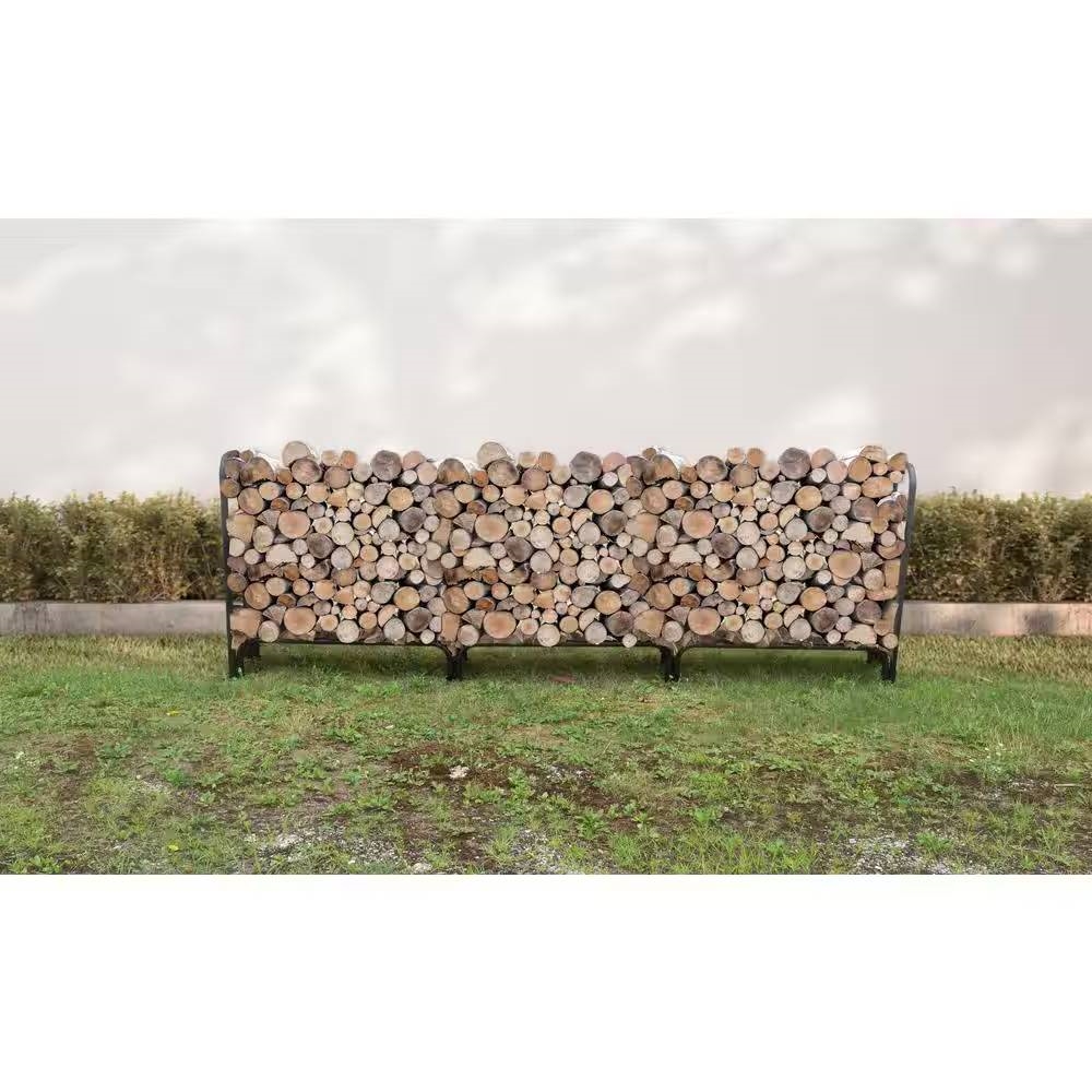 The Heavy Duty Outdoor 12-ft. Firewood Rack - Holds up to 3/4 Cord holds up to 3/4 cord of firewood and is constructed of heavy tubular steel in a durable black finish. Designed to keep firewood off the ground, preventing rot and insects. This sturdy log rack is guaranteed to last you for years.