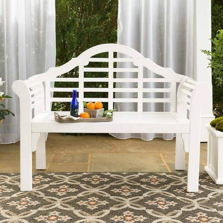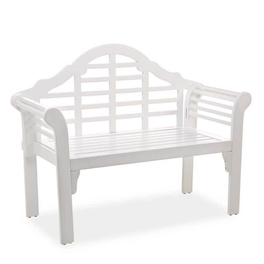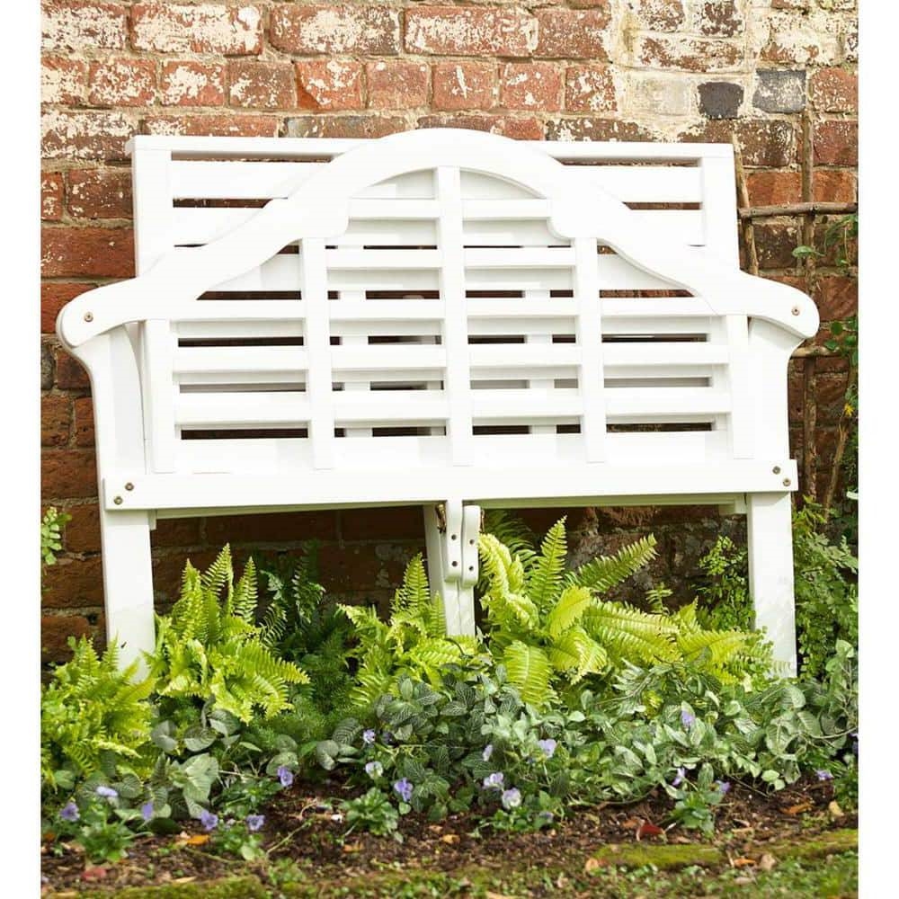This classic outdoor wooden garden bench is made from FSC-certified eucalyptus wood. Sustainable and sturdy, the naturally durable wood features a quality white finish for a beautiful, low-maintenance product. Distinctive design featuring an arched back and scrolled arms. Easy to store with a seat that folds up and locks. The eucalyptus wood is naturally weather-resistant, but it is recommended to store furniture in a cool/dry covered area when not in use.