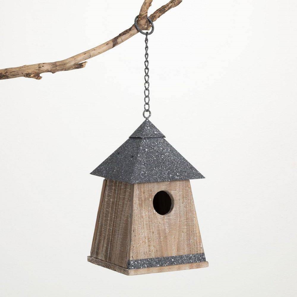 Natural color-washed wood with a gently tapered silhouette, this Outdoor Garden Patio Grey Natural Wood Hanging Bird House is delightful in its simplicity. Great-looking and fully functional, you will have all the backyard birds flocking to this welcoming bungalow.