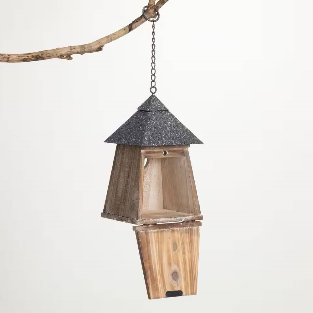 Outdoor Garden Patio Grey Natural Wood Hanging Bird House