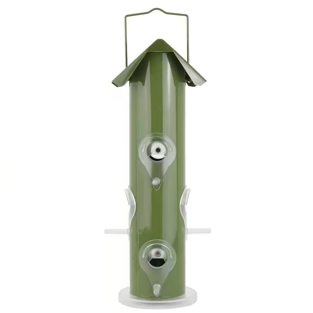 Outdoor Patio Garden 6-Perch Olive Green Metal Tube Bird Feeder