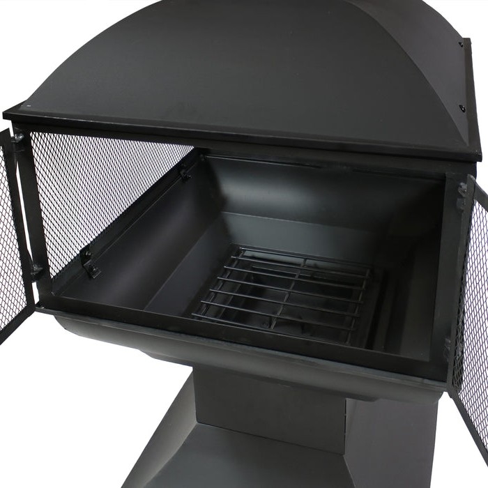 Create a warm and cozy gathering spot on the patio or in the backyard with this unique Large Black Outdoor Steel Chimenea Wood Burning Fire Pit. It offers a unique 360-degree view, so you can gaze on the fire at any angle. This chiminea also includes a log grate to promote better airflow for a better burning fire.