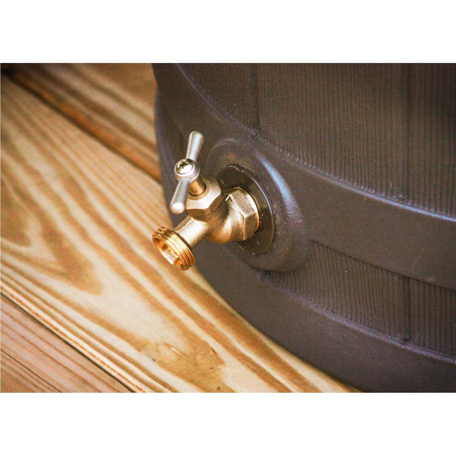 Collect fresh rainwater with this Brown Oak 50-Gallon Plastic Rain Barrel with Bottom Spigot to water your plants and experience a drastic low in your water bill. This rain barrel is made from plastic that makes it sturdy and ensures that it lasts for a long time. This rain barrel is available in multiple finishes. It has a brass spigot that can be used to hose hook up, or it can be linked to another barrel for extra water collection. It has a debris screen included that can prevent contamination of water due to insects, rodents, and other surrounding elements.