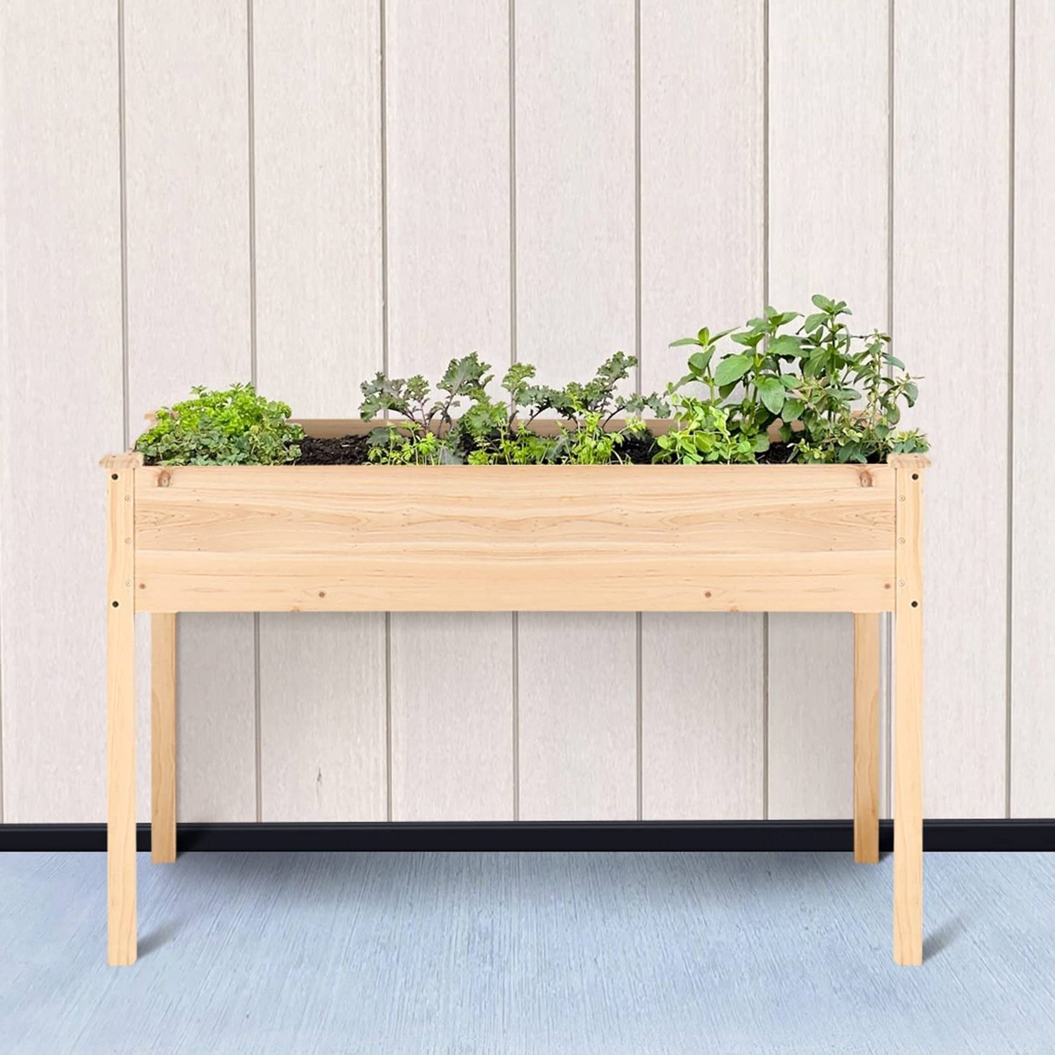 This Outdoor Wood Raised Garden Bed Planter Box 46 x 22 x 30-inch High is designed with long bed space (44.7"*20.7*6.5" internal size), the large capacity and depth are enough to allow your plant roots to penetrate deep into the soil to absorb nutrients. Natural and durable fir for the main body, with harder pine for the legs, with a clear texture and load-bearing, preventing deformation and bending over time. The connection method between the boards adopts the tenon joint structure to ensure the maximum strength and minimize the gap. The 30-inch high design reduces the wear and tear of customers bending the waist during use, and the plant can be watered without the need to lower the head. The design away from the ground can keep the plants away from weeds and rodents, which can avoid nutrients being taken, and your plants being eaten by critters.