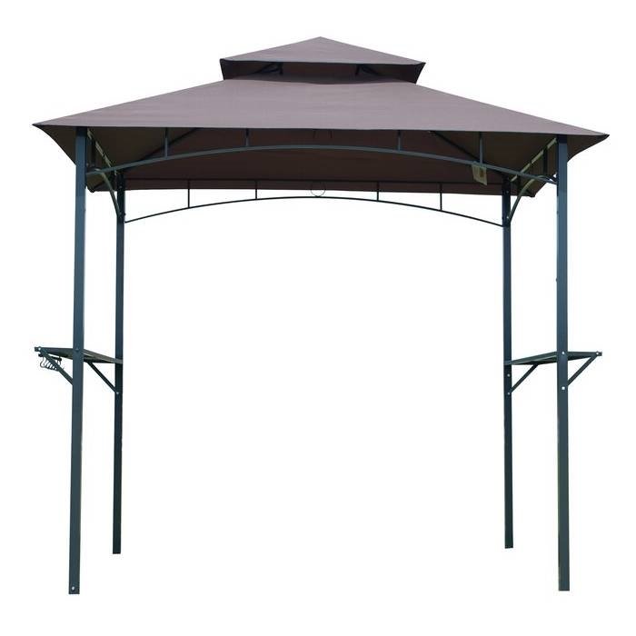 This BBQ Grill Gazebo is an excellent addition to your grilling party. The canopy cover will provide optimal shade while grilling on a hot summer day. The durable canopy protects you from harmful UV rays and has a sturdy iron frame. One metal shelf on each side of the shelter to offer a handy place to set plates and other items. Hooks included for hanging additional cooking essentials like spatulas. Versatile gazebo also comes with a bottle opener attached directly to the frame.