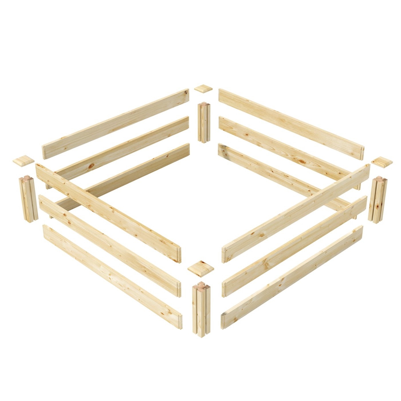 The 4ft x 4ft Outdoor Pine Wood Raised Garden Bed Planter Box - Made in USA perfect for your home or backyard garden. The Open bottom frame allows for your plant roots to grow down deep into your native soil. Made out of untreated, chemical free, Pine wood, and is safe for growing organic vegetables, herbs, and fruits.