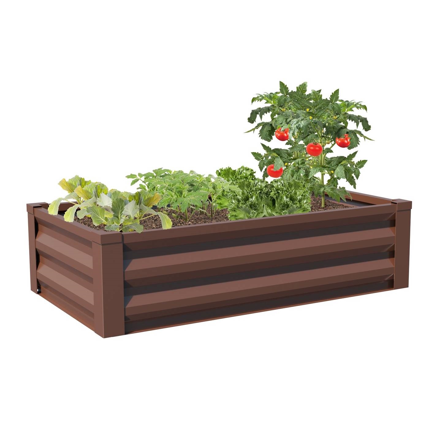 Assembled in minutes and built to last! Build an impressive victory garden with the Brown Powder Coated Metal Raised Garden Bed Planter Made In USA 24" W x 48" L x 10" H. This sturdy planter allows you to easily build and yield a successful garden without tools. The sidewalls slide into the corner piece and simply lock into place using a keyhole locking mechanism. This garden bed is made out of pre-galvanized powder-coated steel making it rust resistant and allowing it to last. Set the open bottomed frame on any level outdoor space, Add soil, plants, seeds, and begin growing the garden of your dreams!
