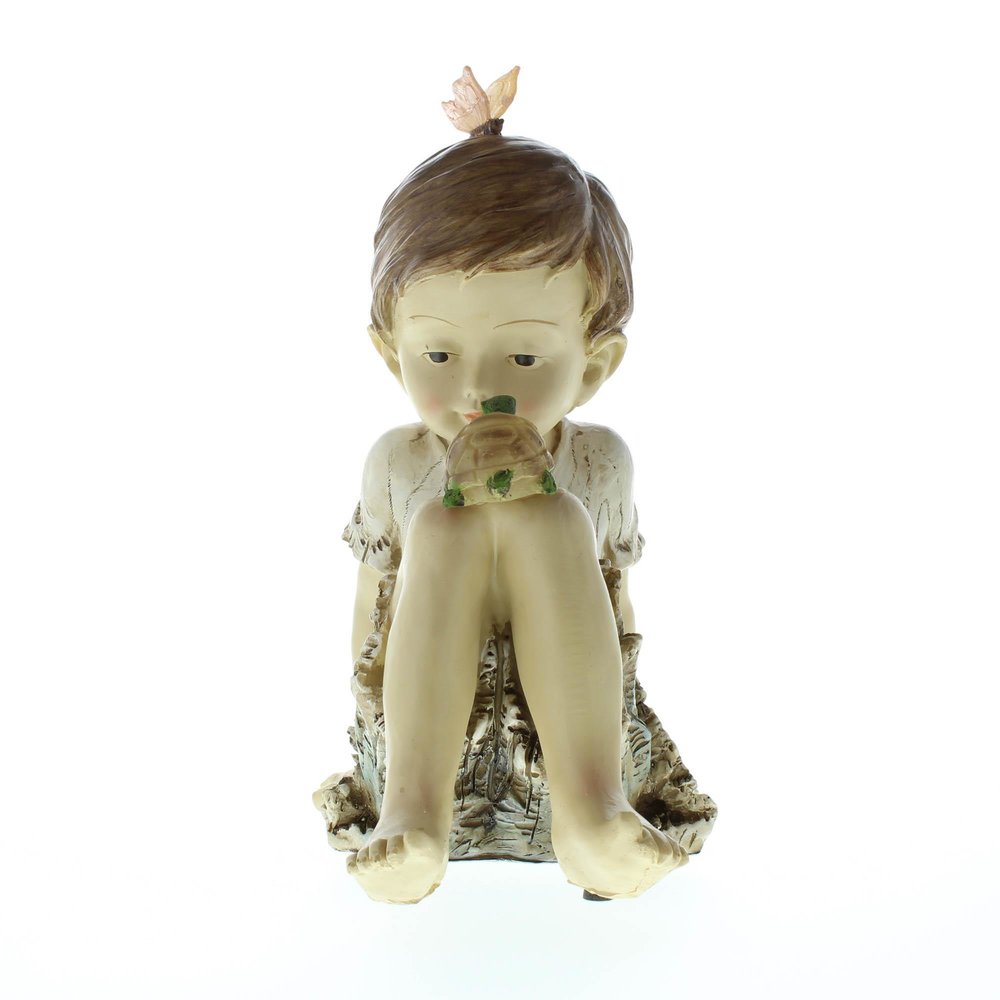 A bright-eyed boy shares a playful moment with his beloved pet turtle and a visiting butterfly joins in the fun. Makes a playful lighting and décor addition to either your indoor or outdoor space!