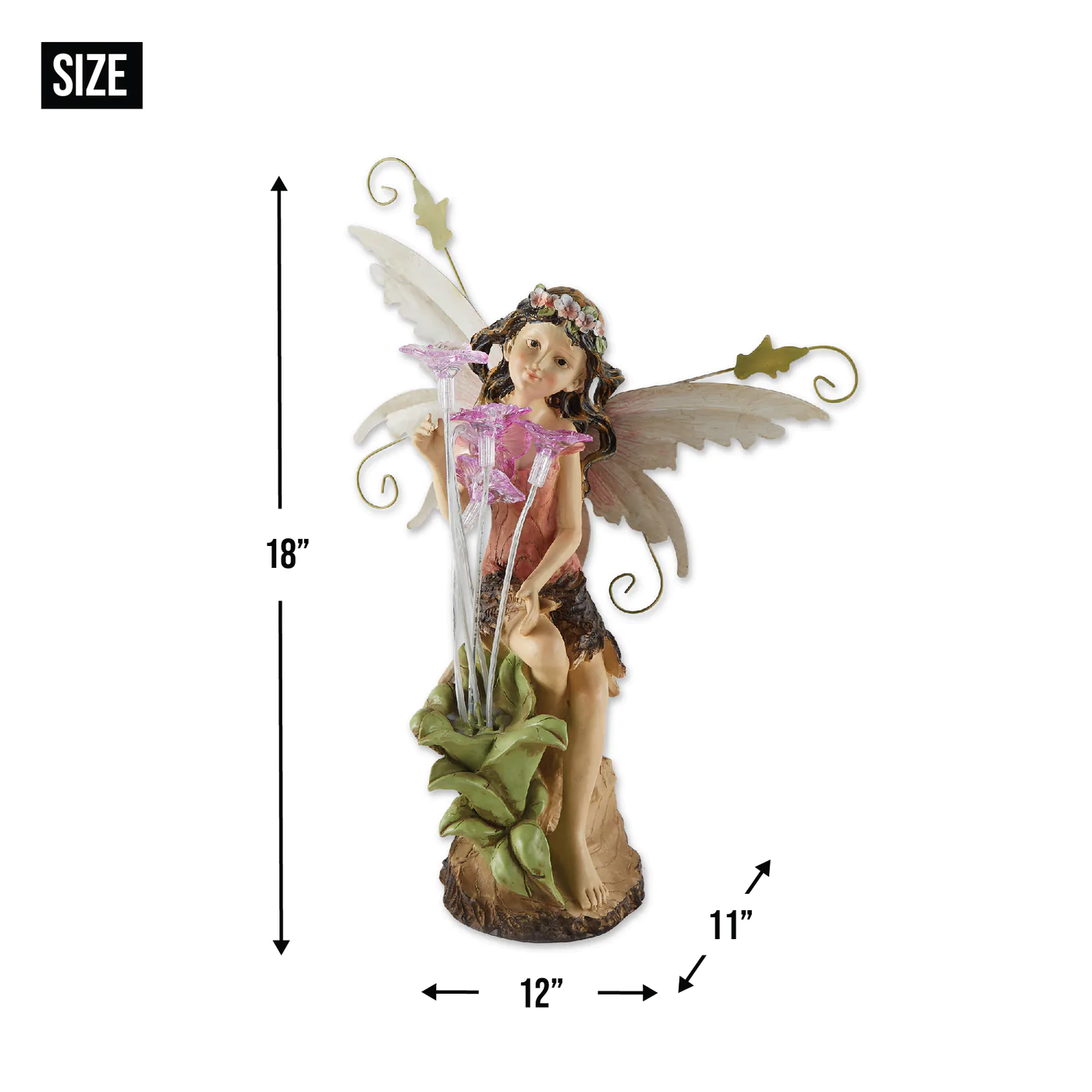 A sweet young fairy pauses to admire a new-found patch of blushing blooms, blessing your garden with the beauty of spring. Enjoy this statue both day and night, thanks to tiny solar lights nestled inside each lovely flower!
