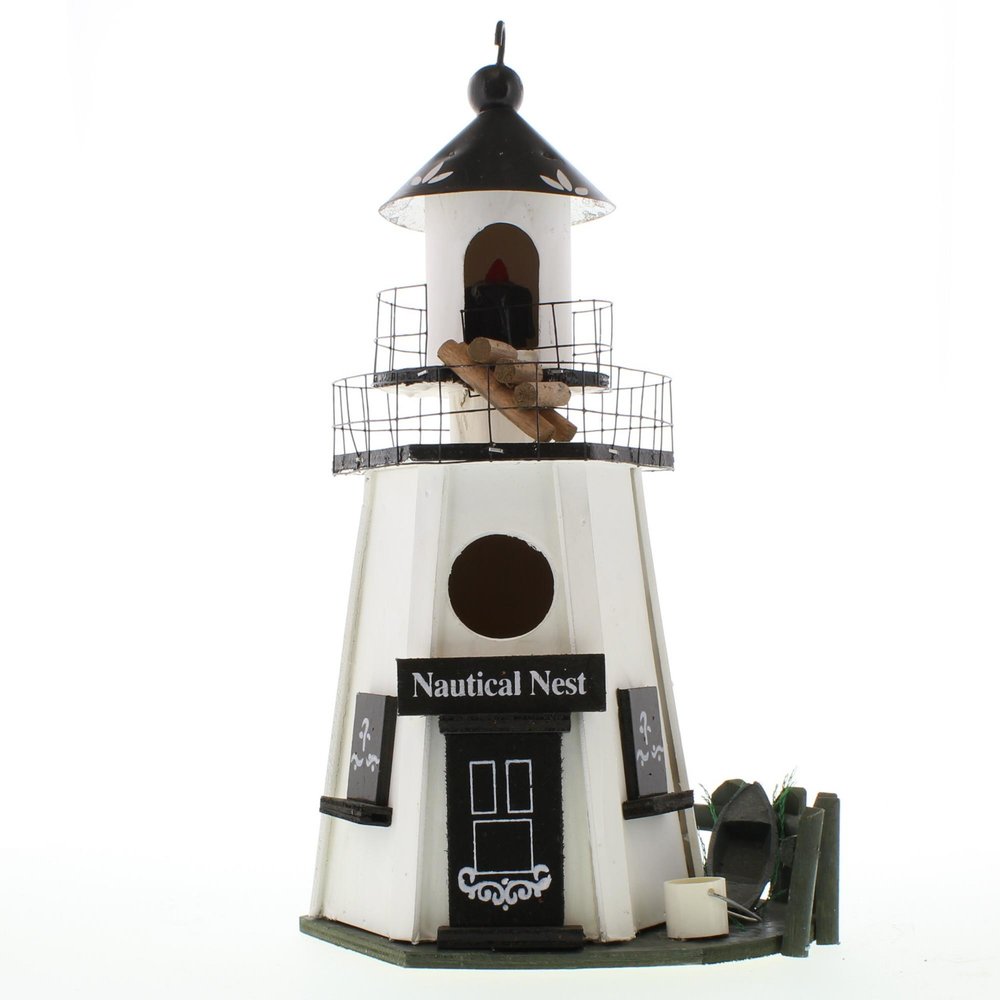 Enhance your nautical decor with this charming Nautical Lighthouse Birdhouse, perfect for garden birds. This handcrafted birdhouse features intricate details and is a great addition to any seaside-themed garden or patio. Made with durable materials, this birdhouse is designed to withstand outdoor elements and provide a safe haven for your feathered friends. Add a touch of coastal charm to your outdoor space with this Nautical Lighthouse Birdhouse today.