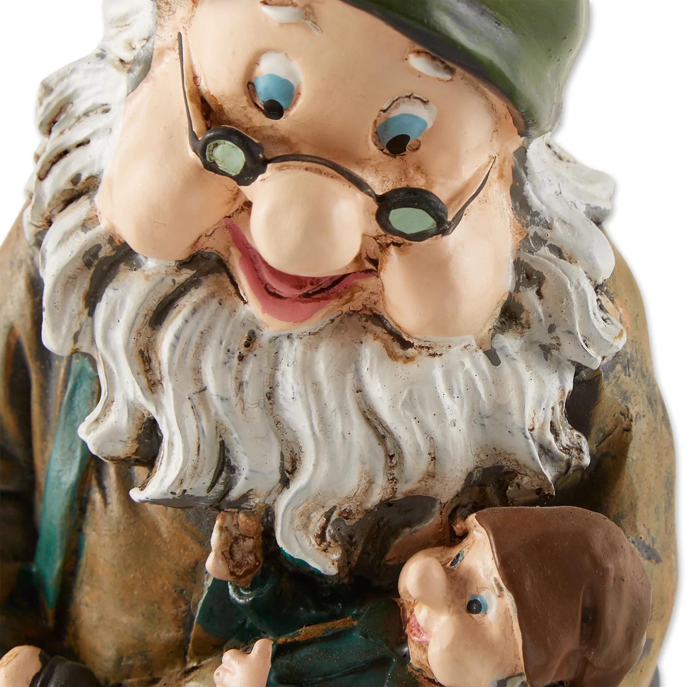 No house is a home without its very own guardian gnome! An apple-cheeked grandfather is loving, while tenderly cradling his tiny grandson. A charming take on the timeless classic yard decoration, scaled down to fit most anywhere, indoors or out.