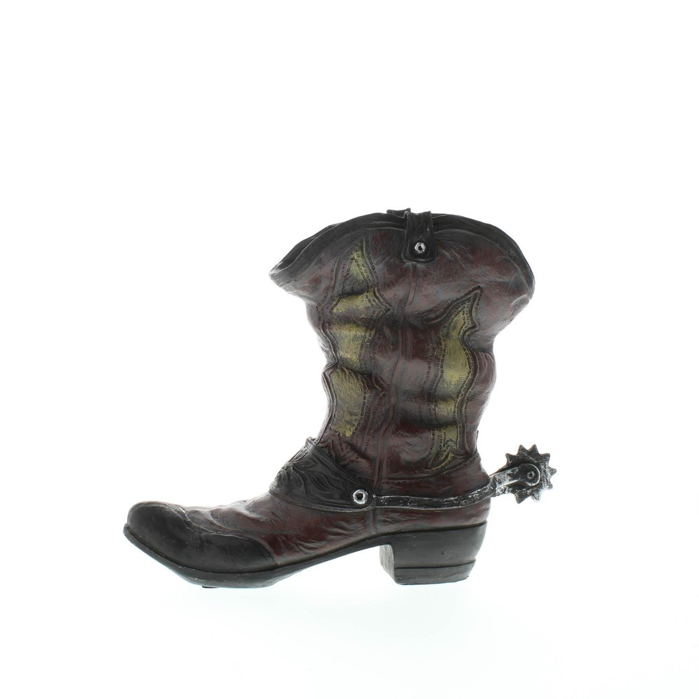 Let your favorite flowers or plant saddle up in this charming cowboy boot planter. This planter has plenty of Western flair and looks like a well-worn and weathered boot, complete with a spur on the back.