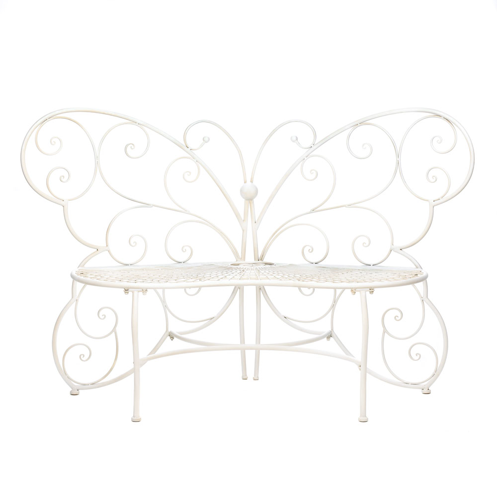 Your garden can become a relaxing oasis with help from this beautiful butterfly bench. Featuring white painted iron shaped into a delicate butterfly, this bench is in shady spot under a tree or along a garden path for a place to relax and enjoy nature. Or sit side by side with a friend, sipping tea on a beautiful summer day. Max. weight limit: 440 lbs.