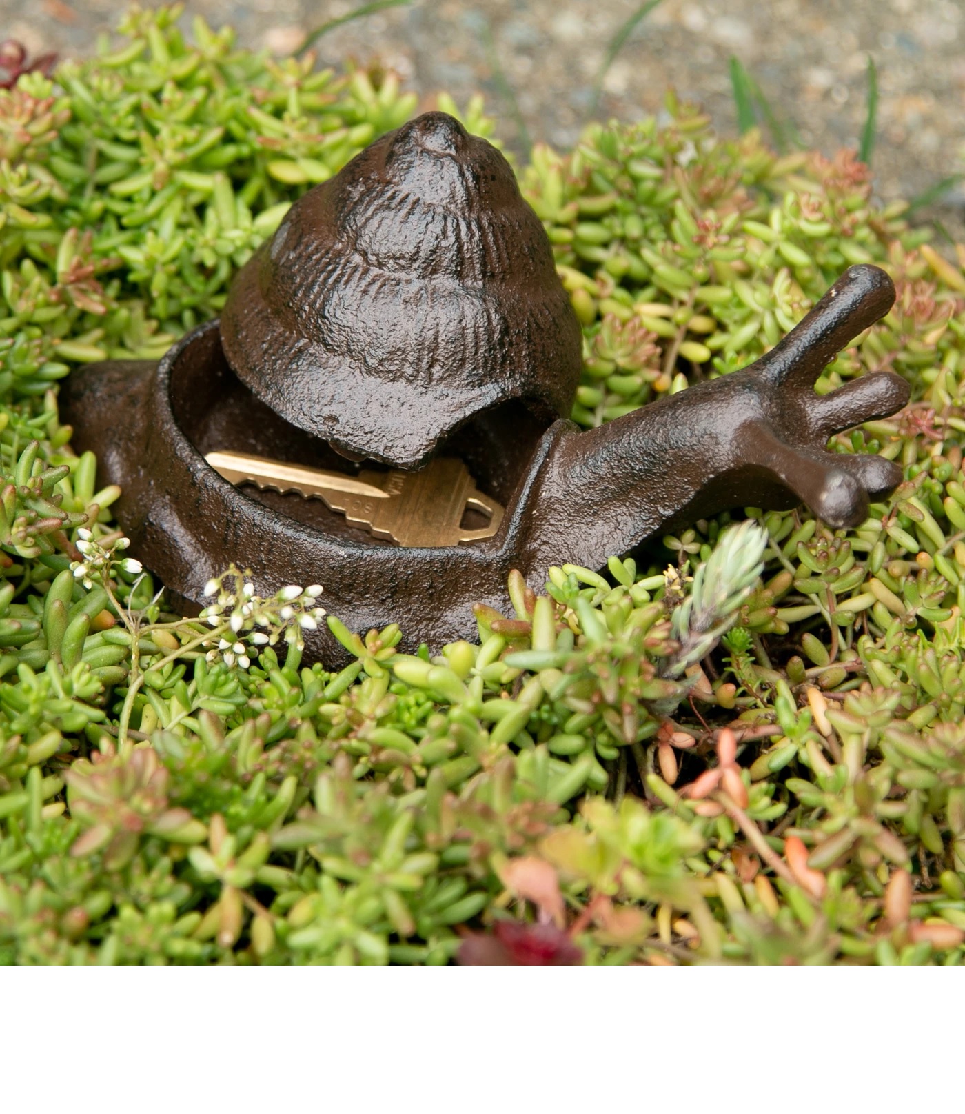 The snail's shell can be removed and used as an unassuming place to hide your spare key or other valuable treasures.