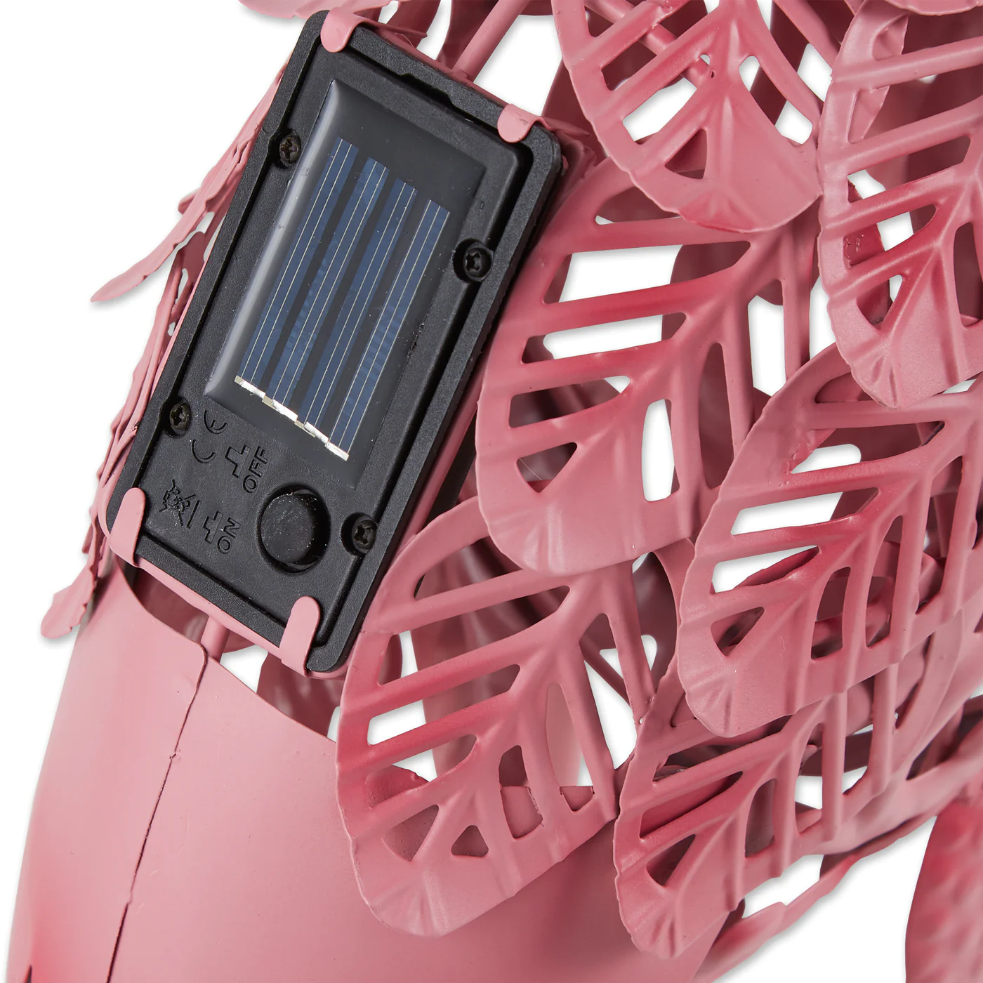 Add a fun pop of color to your outdoor space with this pink lawn flamingo. The yard flamingo includes a solar panel on the back that lights up underneath the feathers for a whimsical garden display anytime of day. The iron frame features gorgeous feather-like details that will make guests take a second look.