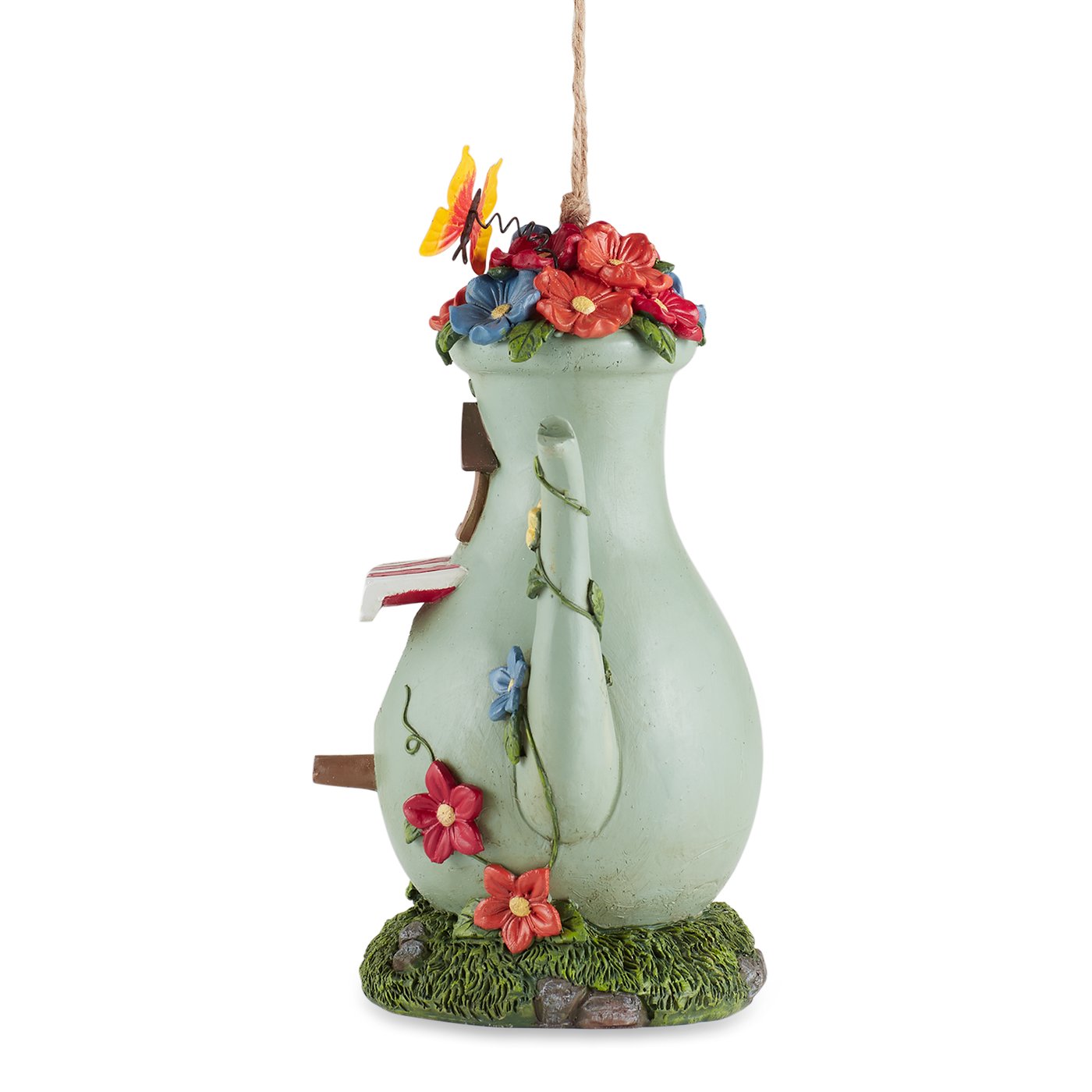 Add a touch of whimsy to your garden with this charming Tall Teapot Birdhouse. Crafted from durable materials, this birdhouse features a unique teapot design that will surely attract feathered friends to your yard. The tall design provides plenty of space for birds to nest and roost comfortably. With its eye-catching design and sturdy construction, this birdhouse is both a functional and decorative addition to any outdoor space. Bring a touch of nature and style to your garden with the Tall Teapot Birdhouse today!