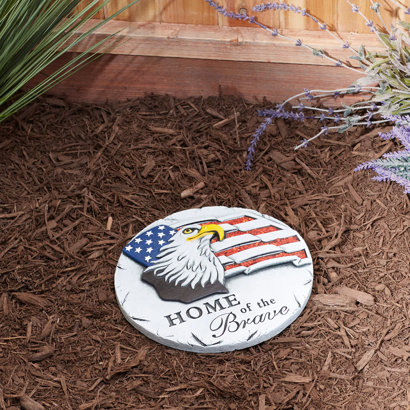 Transform your garden or walkway into a patriotic oasis with our "Home of the Brave" stepping stone. This beautifully crafted stone features the iconic phrase along with a stars and stripes design, making it the perfect addition to any outdoor space. Made of durable materials, this stepping stone is built to withstand the elements and provide years of enjoyment. Add a touch of Americana to your home with this unique and inspiring piece. Shop now and show your pride for the red, white, and blue!