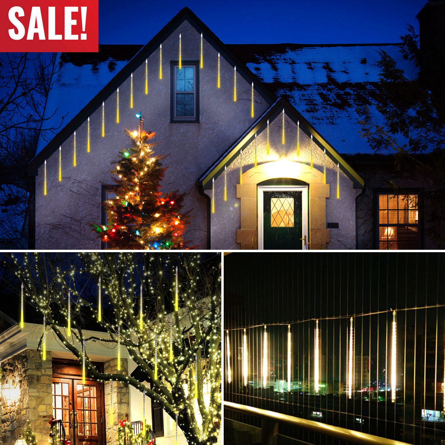 > Solar Powered Meteor Shower String Lights 9.84FT Falling Raindrop Tube Lamp Water Resistant Decorative Lights For Tree Home Garden Parties