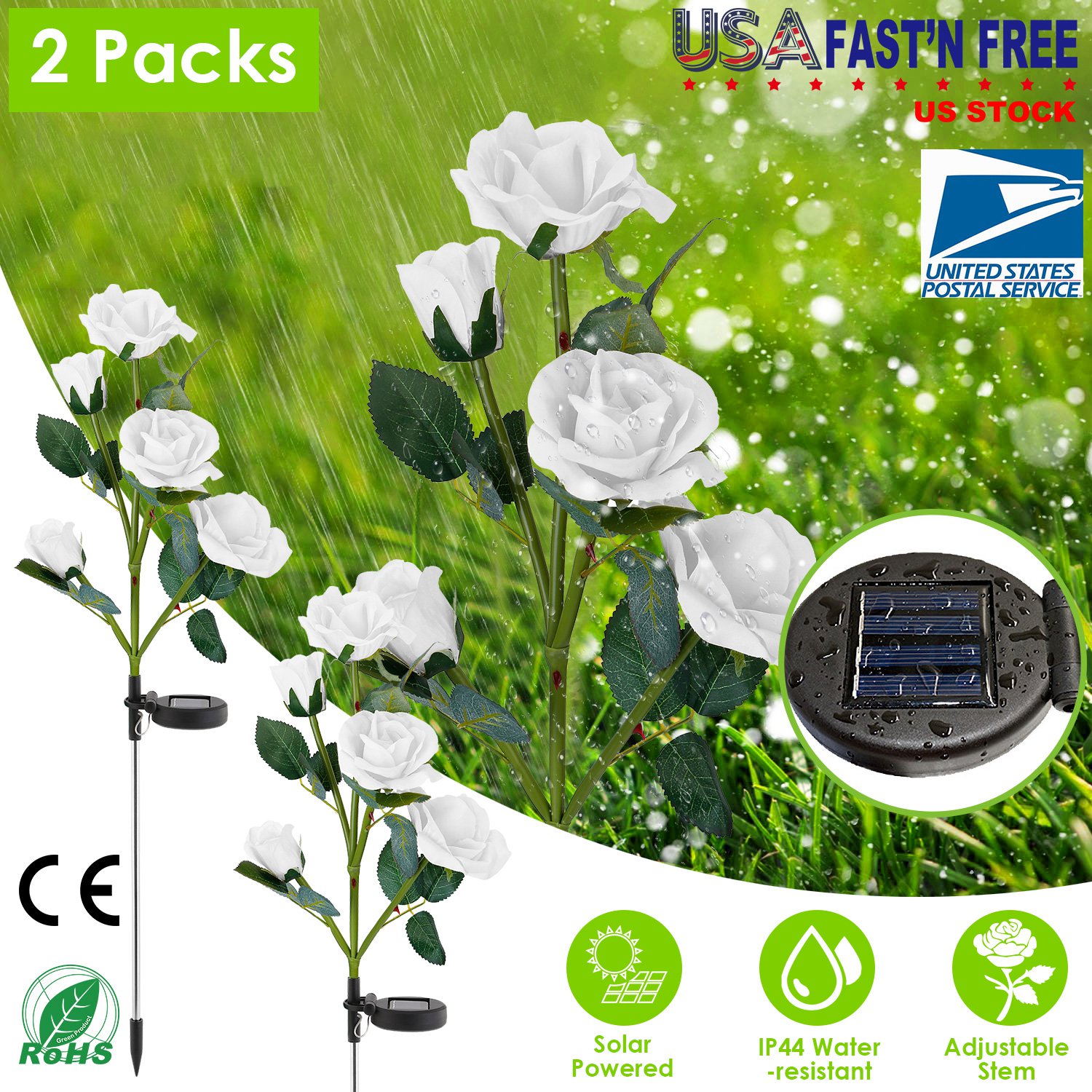 > 2Pcs Solar Powered Lights Outdoor Rose Flower LED Decorative Lamp Water Resistant Pathway Stake Lights For Garden Patio Yard Walkway