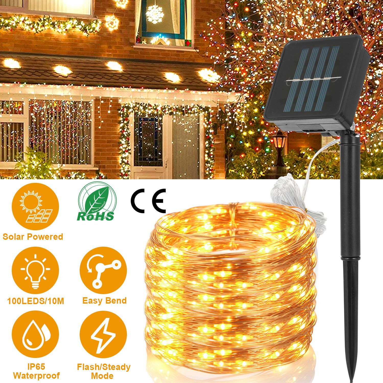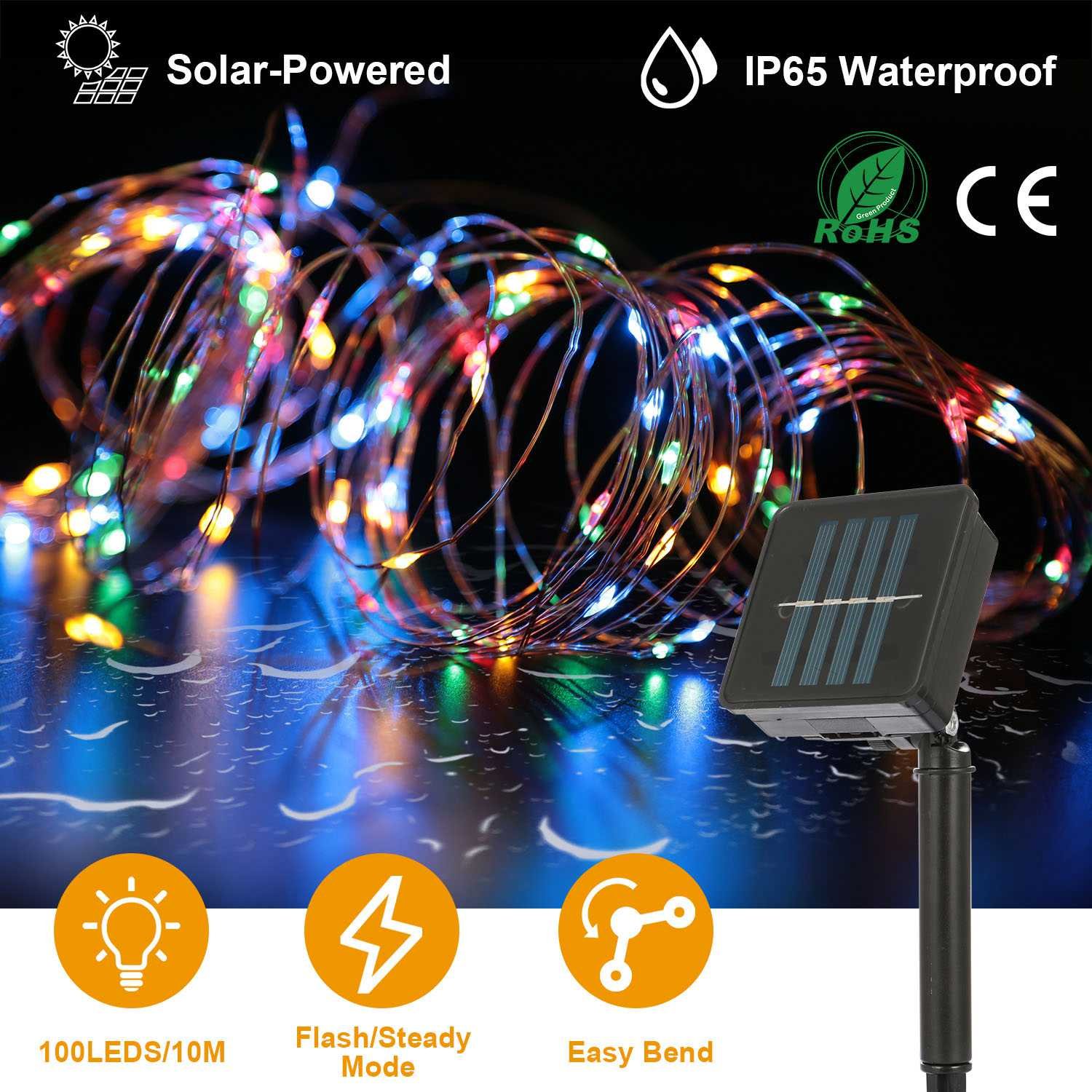 100 LEDs Solar String Lights Outdoor IP65 Waterproof Copper Wire String Lights Solar LED Fairy Lamps Wedding Party Festival